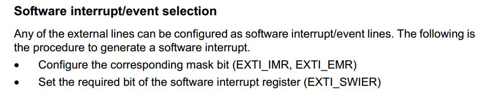 - 该控制器还允许通过软件模拟(仅)外部事件,并通过写入专用寄存器来对相应的硬件事件行进行复用。