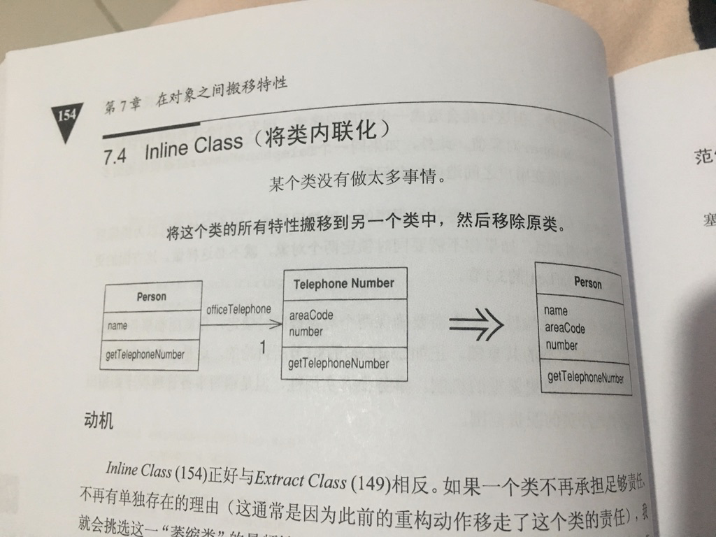 - 类内联化:将这个类的所有特性搬移到另一个类中,然后移除原类。