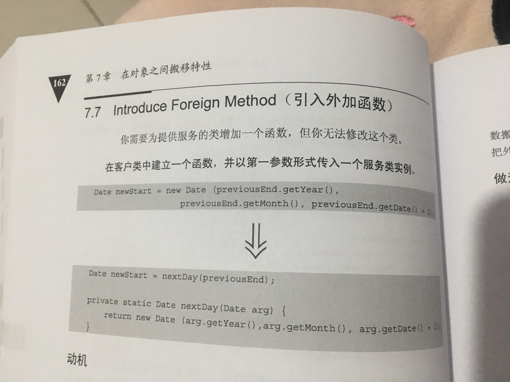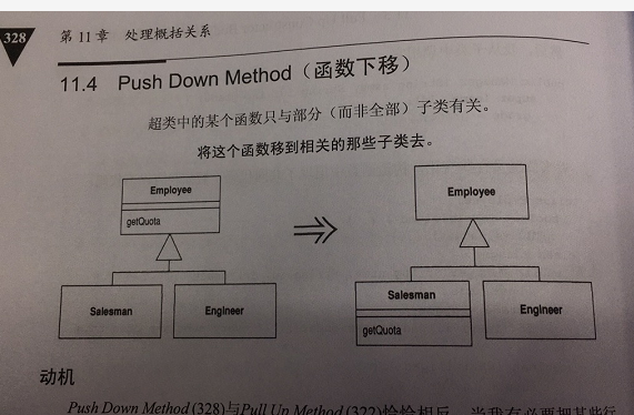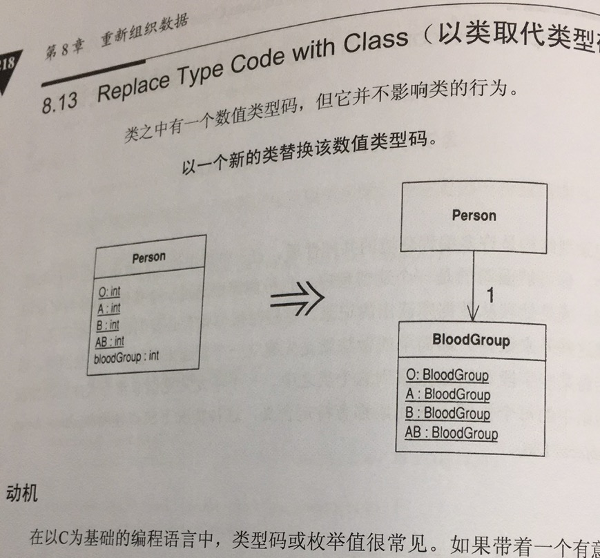 - 纯数据类: 所谓纯数据类是指:他们拥有一些字段,以及用于访问(读写)这些字段的函数,除此之外一无长物。纯数据类常常意味着行为被放在了错误的地方。也就是说,只要把处理数据的行为从客户端搬移到纯数据类里来,就能使情况大为改观。