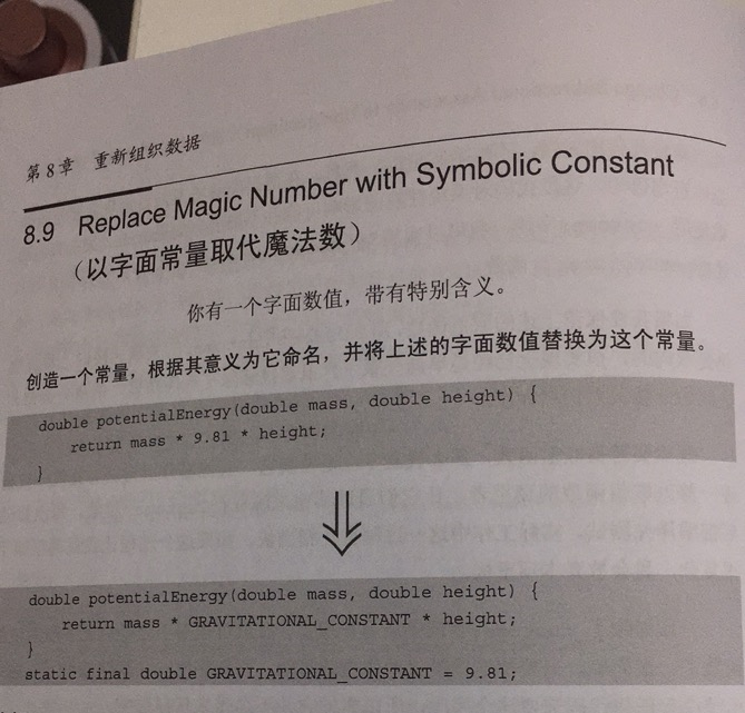 - 字面常量取代魔法数:创造一个常量,根据其意义为他命名,并将上述的字面数值替换为这个常量。
