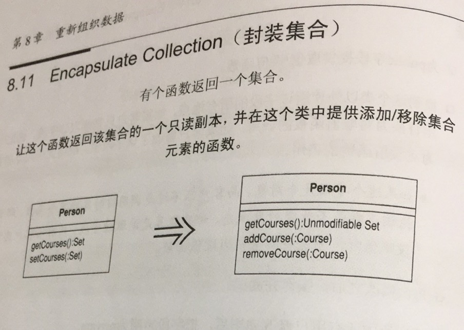 - 封装集合:让这个函数返回该集合的一个只读副本,并在这个类中提供添加/移除集合元素的函数。