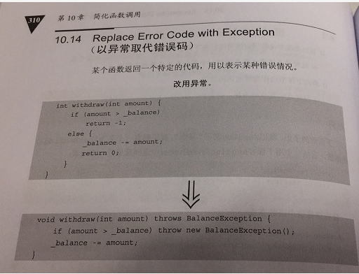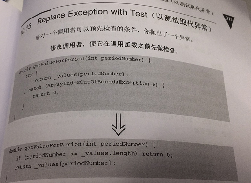 - 以测试取代异常:修改调用者,使它在调用函数之前先做检查。