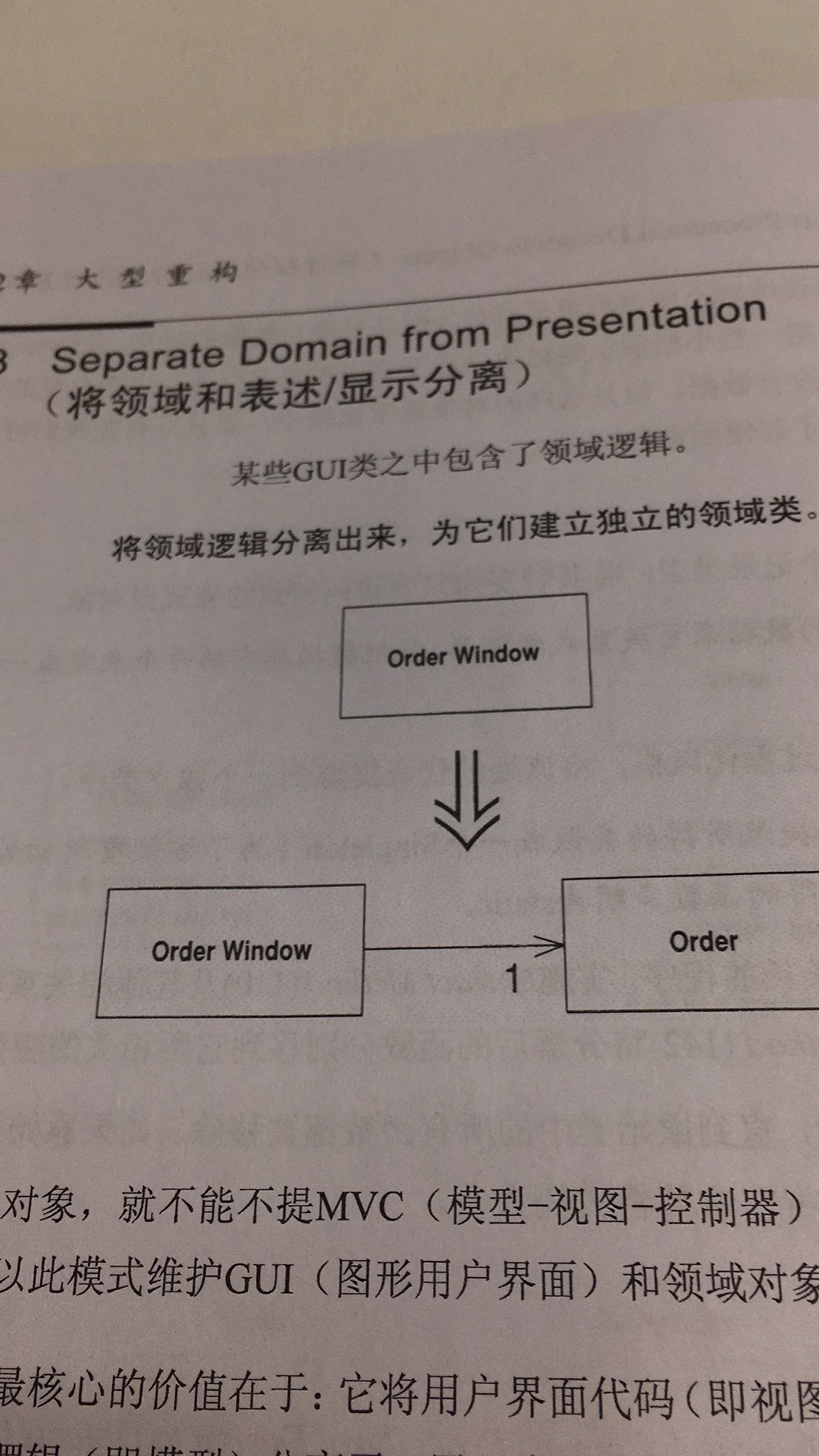 - 将领域和表述/显示分离:将领域逻辑分离出来,为他们简历独立的领域类。