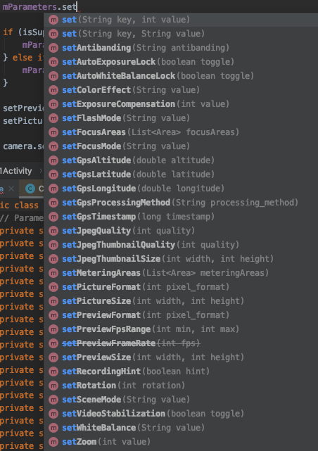 通过Camera.Parameters可以设置大部分的功能,下面介绍几个重要功能: