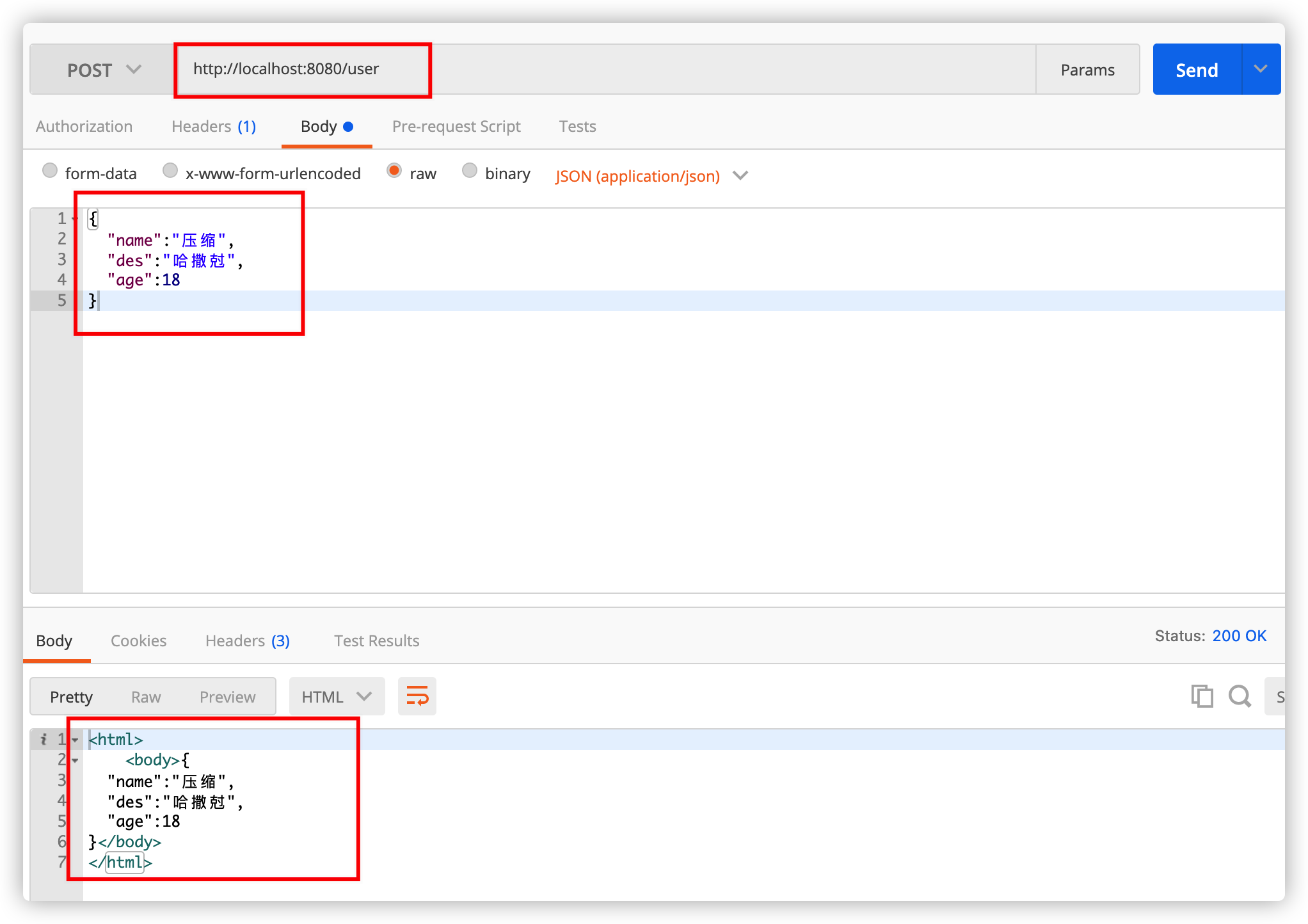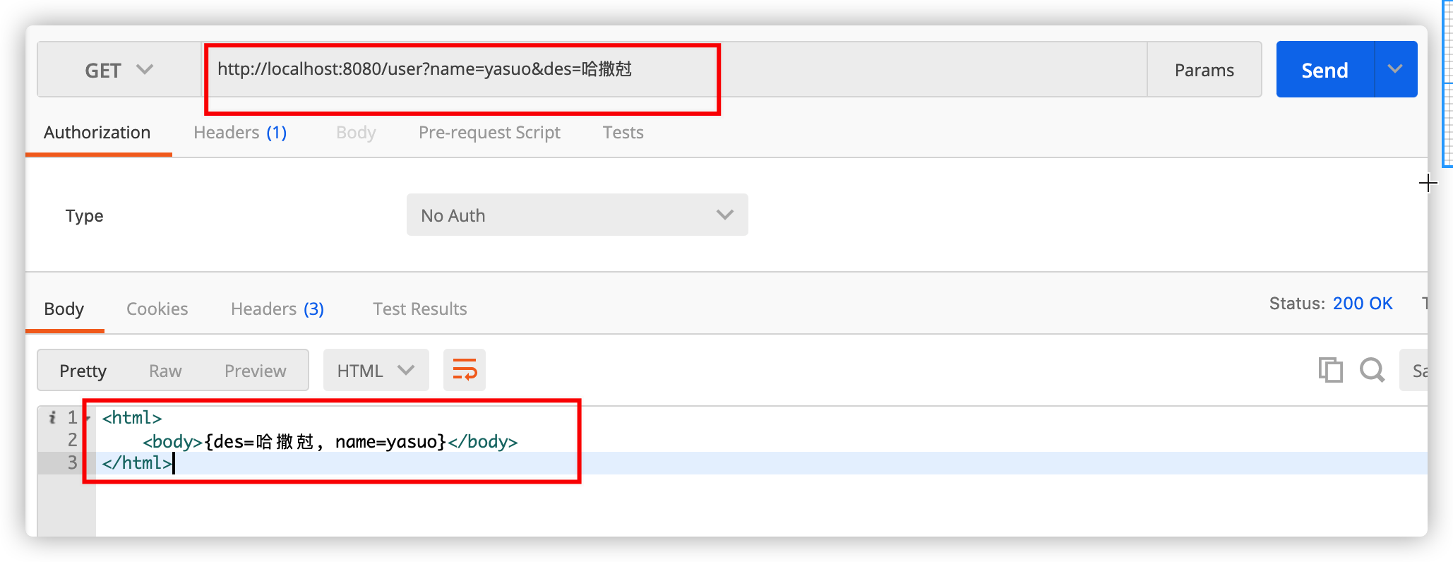 本案例中,为了掩饰我们设置的 Content-Type 为 text/html ,也就是返回 html 格式的数据给客户端。