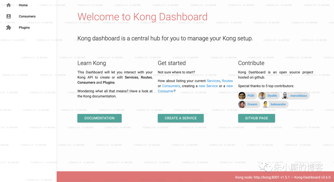Kong Dashboard的Github地址为:https://github.com/PGBI/kong-dashboard。docker 环境中安装运行如下: