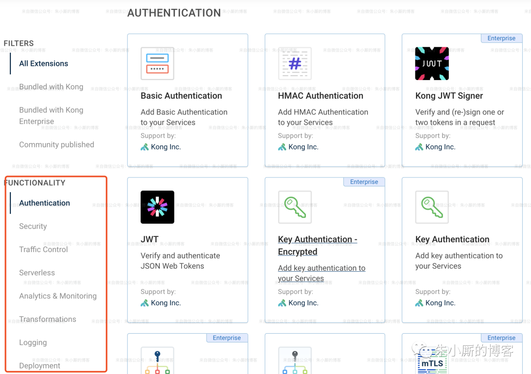 Kong 官网(https://docs.konghq.com/hub/)列出了已有的所有插件,如下图所示: