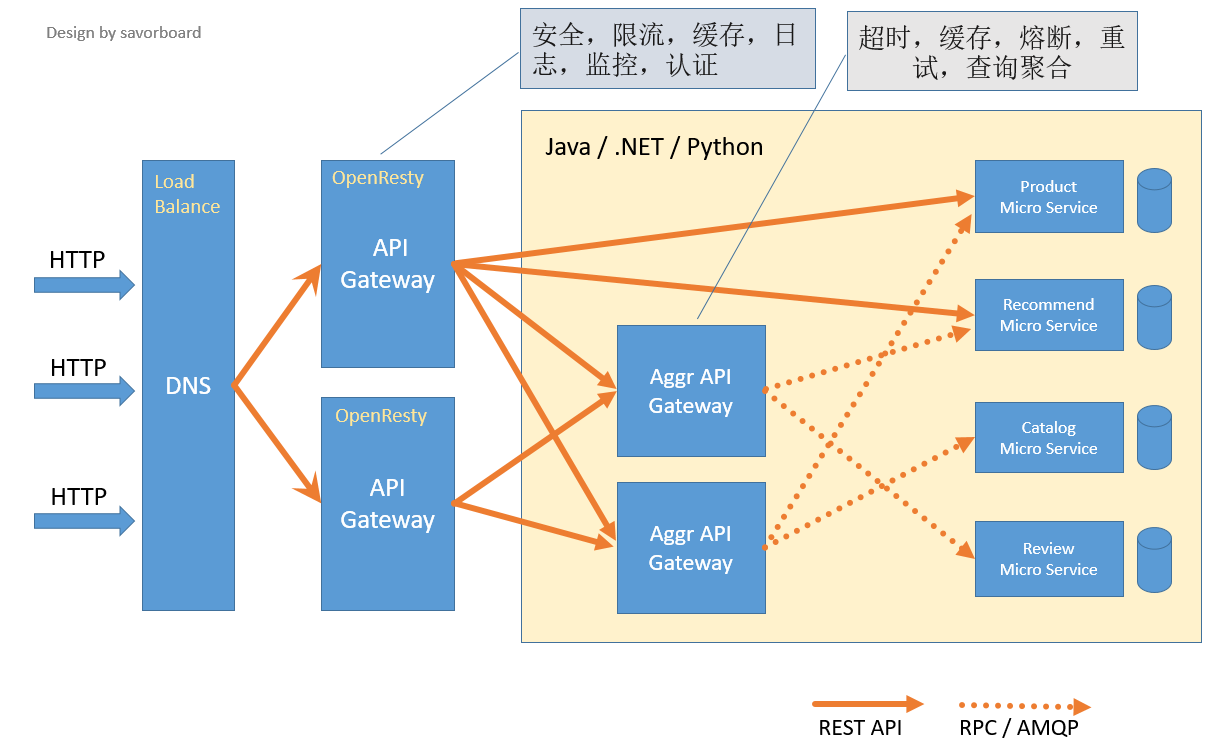 - 除了单点问题,还有一个问题,网关需要承担日志,监控,安全,服务发现,版本控制等,甚至超时,熔断,重试,聚合查询等职能,这很容易造成性能问题。