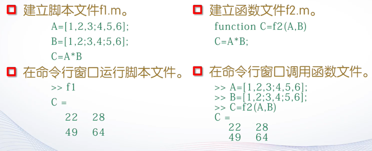 分别建立脚本文件和函数文件,求两个矩阵的乘积。