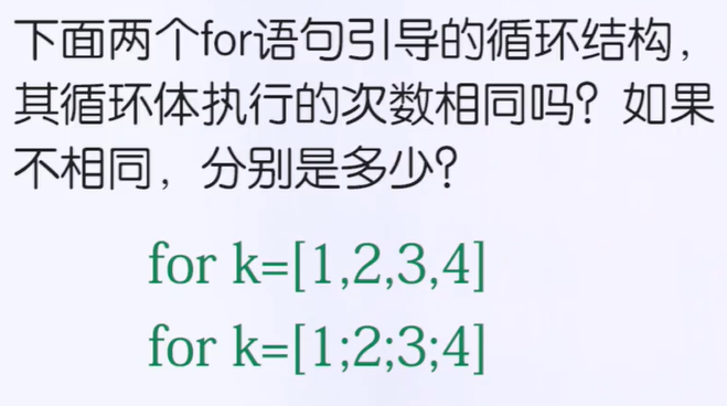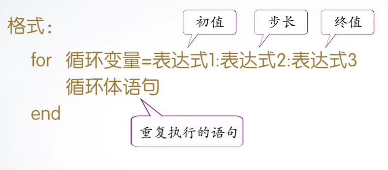 按照MATLAB的定义,for语句的循环变量也可以是一个列向量,其格式为: