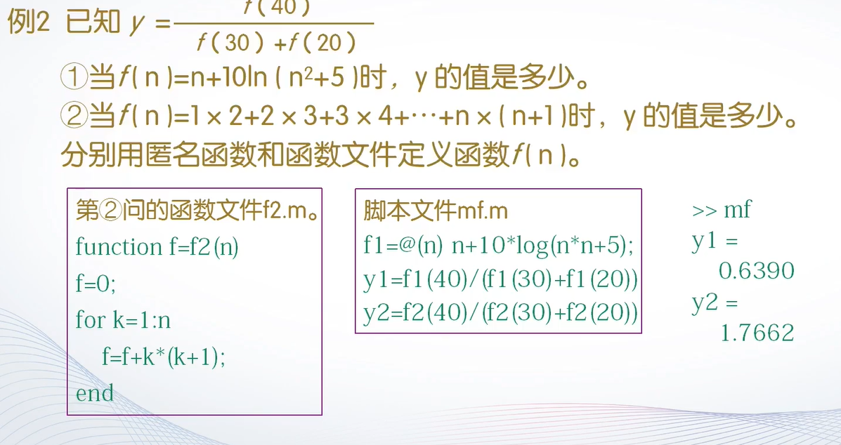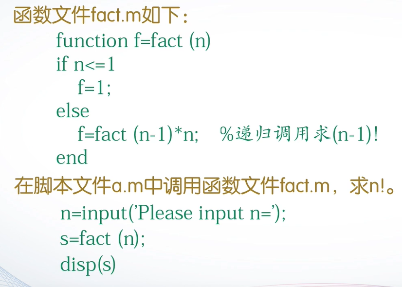 以上就是辛勤猎豹最近收集整理的关于MATLAB笔记3:MATLAB程序流程控制一、顺序结构程序二、用if语句实现选择结构四、用for语句实现循环结构五、while语句实现循环结构六、函数文件的定义与调用七、函数的递归调用八、函数参数与变量的作用域的全部内容,更多相关MATLAB笔记3:MATLAB程序流程控制一、顺序结构程序二、用if语句实现选择结构四、用for语句实现循环结构五、while语句实现循环结构六、函数文件内容请搜索靠谱客的其他文章。