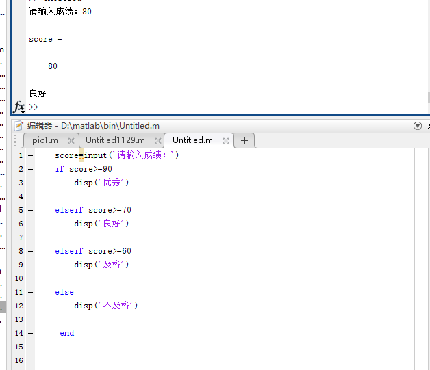 score=input('请输入成绩:');%这边输入的是百分分数