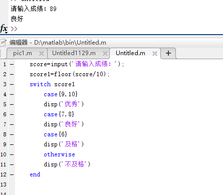 注:M函数必须在编辑器窗口中进行;而执行M函数是要在指令窗口中进行,并赋值