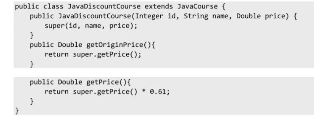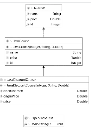从类图中可以看出,JavaDiscountCourse中保留了覆盖JavaCourse的getPrice()方法,而不是直接修改JavaCourse类。