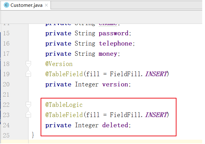 步骤二:修改JavaBean,给deleted字段添加@TableLogic