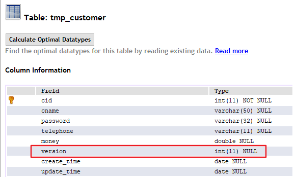 步骤一:修改表结构,添加version字段