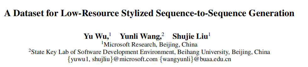 论文链接:https://www.msra.cn/wp-content/uploads/2020/01/A-Dataset-for-Low-Resource-Stylized-Sequence-to-Sequence-Generation.pdf