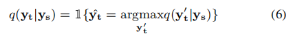 其中q(y’t | ys)表示教师在所有可能序列的样本空间上的序列分布。由于指数搜索空间的存在,我们将教师分布q替换为: