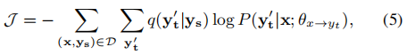 为了解决错误传播问题,师生框架首先利用S学习一个教师模型P(yt | ys,θys→yt),然后通过最小化KL散度来学习学生模型P(yt | x;θx→yt)。