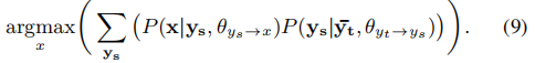 形成一个伪文本对(ˆx, yt).,∀¯y ∈ Mt,我们通过下式将¯y翻译为ˆx: