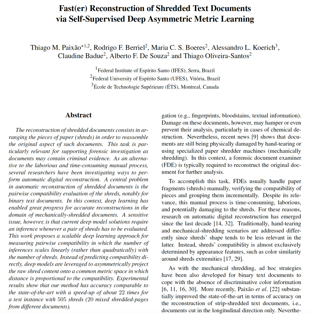 15、Fast(er) Reconstruction of Shredded Text Documents via Self-Supervised Deep Asymmetric Metric Learning