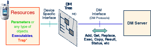 OMA DM通过给设备设置相关参数对设备进行配置、诊断等等,这些参数通过树型结构组织在一起称作设备管理树(DEVICE MANAGEMENT TREE)