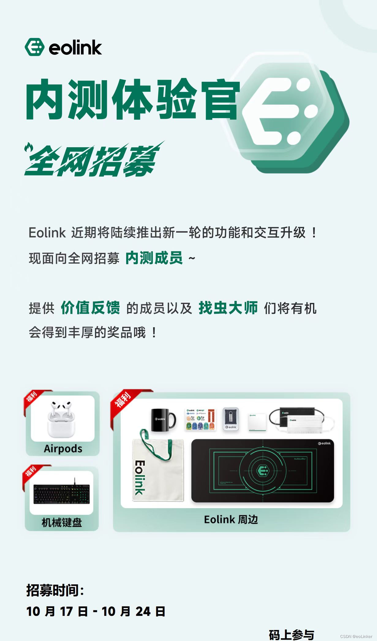 以上就是粗心吐司最近收集整理的关于Eolink 内测体验官全网火热招募中!的全部内容,更多相关Eolink内容请搜索靠谱客的其他文章。