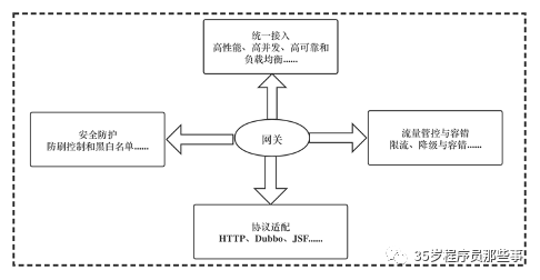 网关要具备时间校验、方法校验、版本校验和签名校验等功能,当然网关还需要具备服务降级、日志记录以及监控与告警功能。
