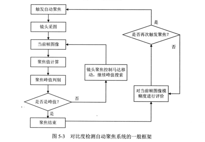 自动对焦基本原理是:对焦过程中图像仍在一直不断产生,把镜头在某个位置时的那帧图像送到图像处理器(ISP)处理,得出该图像的统计信息,再把这信息送到对焦算法库(也许是在isp硬件上执行,也许是在驱动程序软件执行),对焦算法库根据硬件规范和上述统计信息算出下一步镜头该往哪个方向移动多少距离,并驱动镜头到达那个位置;接着在此位置得到新图像,又计算统计信息,计算再下一步的镜头位置…图像清晰度渐渐变化,如此经过几个循环收敛,图像到一定程度,就认为对焦成功。