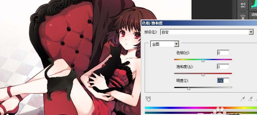 8、感觉猫咪有点淡,快捷键ctrl+U弹出调色对话框,进行调色,调到满意色相,最后确定