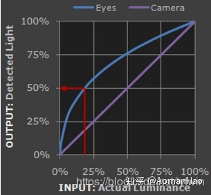 人眼对外界光源的感光值与输入光强不是呈线性关系的, 而是呈指数型关系的。 在低照度下,人眼更容易分辨出亮度的变化, 随着照度的增加,人眼不易分辨出亮度的变化。而摄像机感光与输入光强呈线性关系, 为方便人眼辨识图像, 需要将摄像机采集的图像进行gamma 矫正。