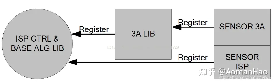 不同的sensor 都以回调函数的形式,向ISP 算法库注册控制函数。ISP 控制单元调度基础算法库和3A 算法库时,将通过这些回调函数获取初始化参数,并控制sensor,如调节曝光时间、模拟增益、数字增益,控制lens 步进聚焦或旋转光圈等。