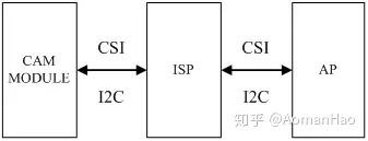 外置 ISP 架构是指在 AP 外部单独布置 ISP 芯片用于图像信号处理。外置 ISP 的架构图一般如下所示: