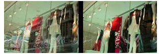 在监控中经常会遇到玻璃反光景物的拍摄,例如下图,玻璃橱窗场表面反光导致内部景物不清晰,采用偏光镜后消除了表面反射光,内部景物清晰了。