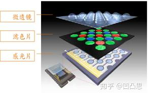 - 感光片:将穿透滤色层的光源转换成电信号,并将信号传送到影像处理芯片,将影像还原。