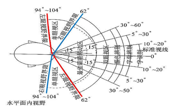 3水平转动头部,将视野中心移动至记录的视野右侧刻线位置,此时头部的角度记录为B;