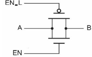足够负时,M1,M3,M4关断,M2,M5处于深线性区,传输电流为0;