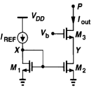 (b)共源共栅电压源:为了抑制沟道长度调制,采用该结构可是底部晶体管免受Vp影响