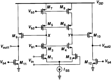 设计时,应要确定输入共模电平,PMOS,NMOS共源共栅管的栅极偏置电压。共源共栅器件产生的噪声可以忽略。