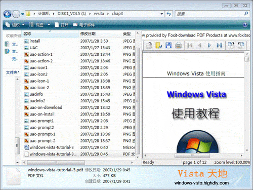 另外需要指出的是,该工具对中文PDF文件的支持不存在任何问题。下图即Windows Vista使用教程第三章PDF文件的预览,可以看到该PDF文档的内容包括其中的图片、汉字均能够正确显示。