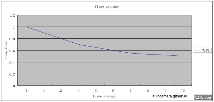 该公式从理论上证明了n帧平均会降低temporal noise `$n^{0.5}$` 倍。所以信号处理中去除temporal noise的方法就是多帧平均加运动检测,如果存在图像存在变化就不累加,如果图像无变化就累加平均。
