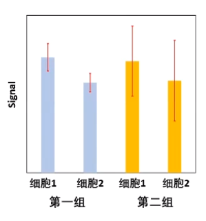 虽然两组信号强度差异一样,但是第二组的噪声要更大,所以不能显著地区分第一类细胞和第二类细胞。