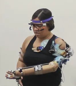 先进的假肢感受抓握运动感,指尖触摸,通过思维直观控制。 用户手臂和身体上的反光标记有助于计算机在 3D 环境中看到他们的动作,而眼镜则可以让计算机准确地看到他们看到的东西,如下图所示。