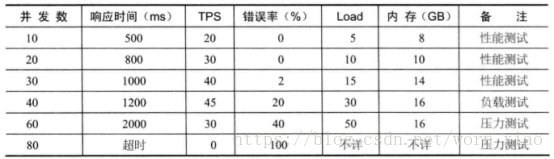 如上图所示是一个性能测试报告样例,随着并发数目的增长可以看出各个阶段的测试结果。