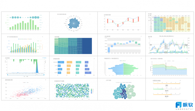 分析仪表板,有更通俗的叫法,就是交互式图表组件。比如常见的柱状图、折线图、散点图等,还有高级一些的矩形树图、多层圆环图、行政地理图、自定义地图、热力地图、流向地图等等。这里重点在于,这些图表既要BI内置,同时还要支持业务人员简单拖拽实现图表展现。从目前来看,这个趋势还是比较明显的,越来越多的业务人员愿意自行拖拽分析。