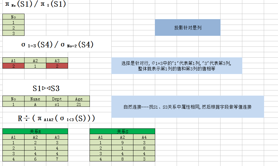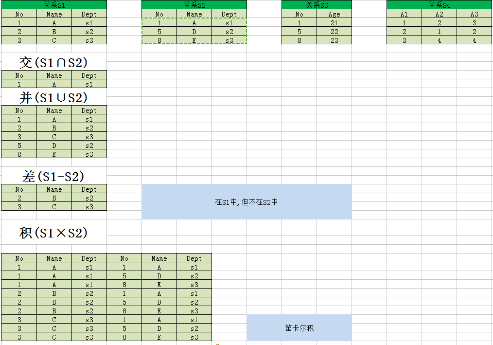 以上就是震动电灯胆最近收集整理的关于数据库关系代数运算(交、并、差、笛卡尔积、投影、选择、自然连接、除)的全部内容,更多相关数据库关系代数运算(交、并、差、笛卡尔积、投影、选择、自然连接、除)内容请搜索靠谱客的其他文章。