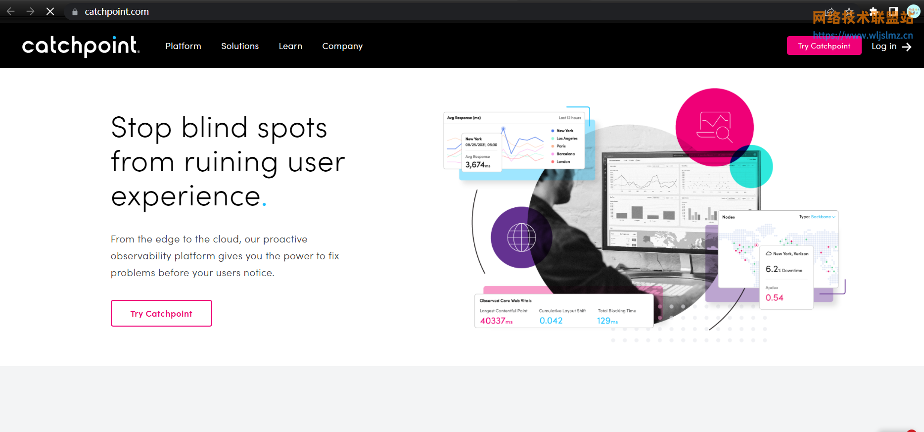 随着组织开始涉足云服务,Catchpoint 于 2008 年作为专门的监控工具提供商推出。如今,这家位于纽约市的供应商的使命是通过其 Catchpoint 平台监控混合网络用户的端到端数字体验。客户可以为端点、网络、综合监控和真实用户监控 (RUM) 选择单独的监控解决方案,或与 Catchpoint 平台捆绑。