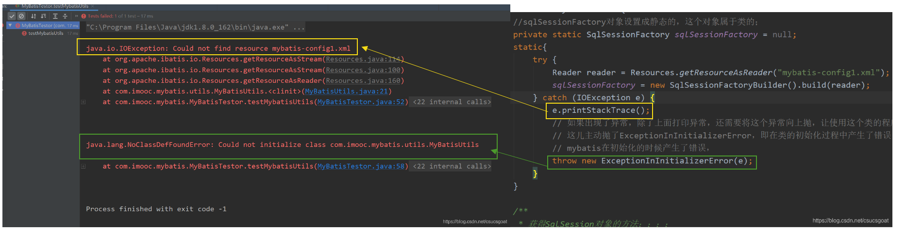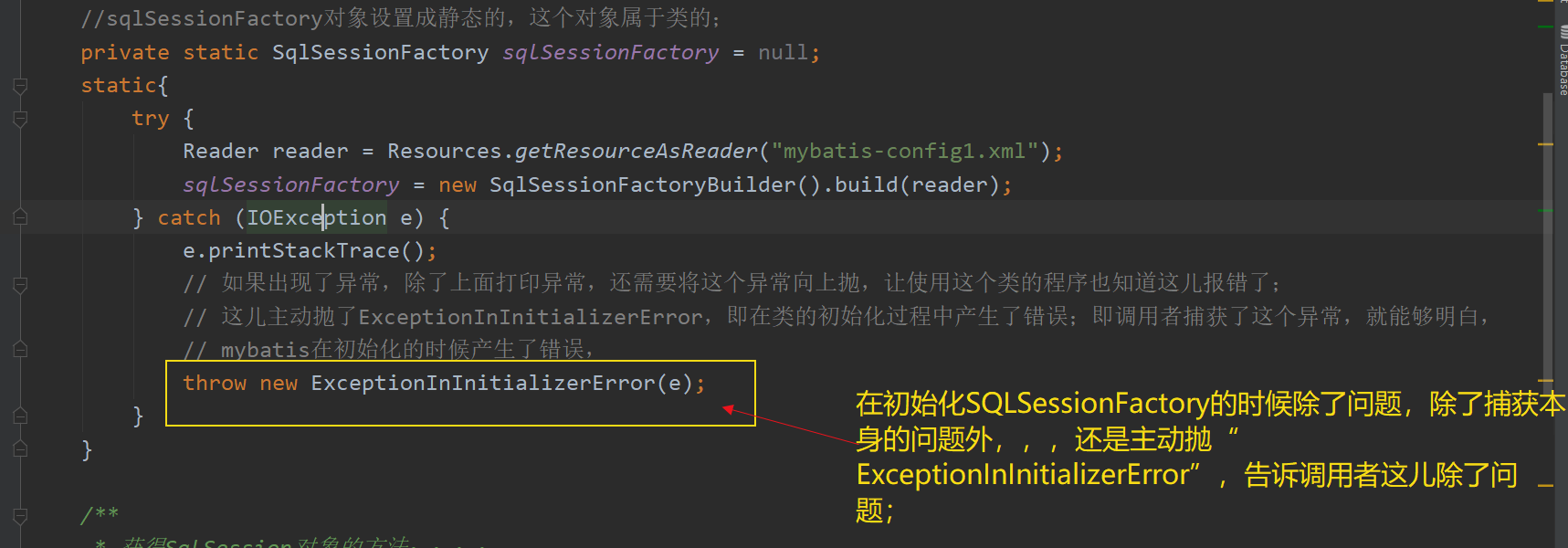 (1)SqlSessionFactory对象设置成了static;然后,SqlSessionFactory的实例化代码也放在了静态代码快中;这保证SqlSessionFactory全局唯一;