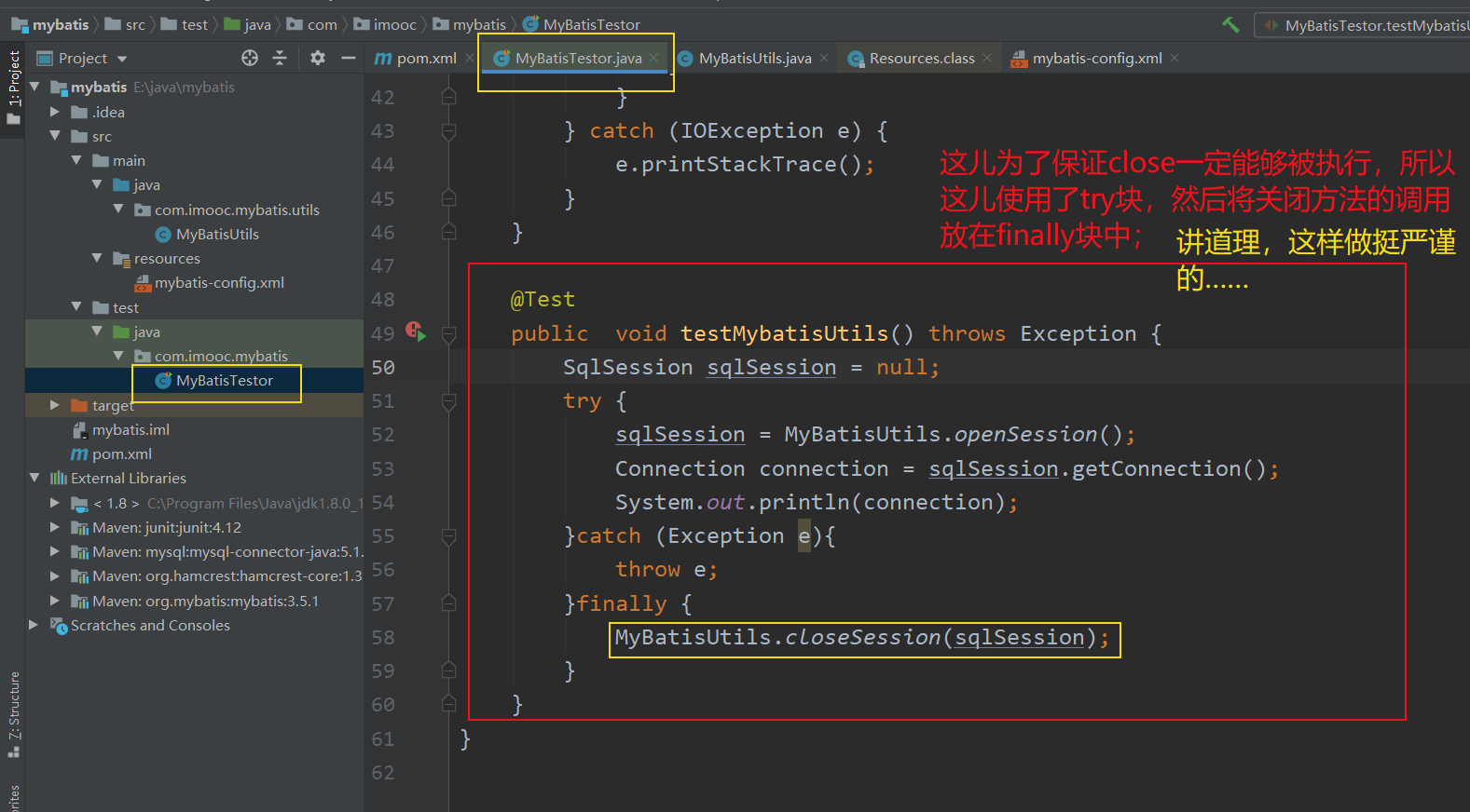 (3)为了测试MyBatisUtils:在MybatisTestor类中编写测试方法: