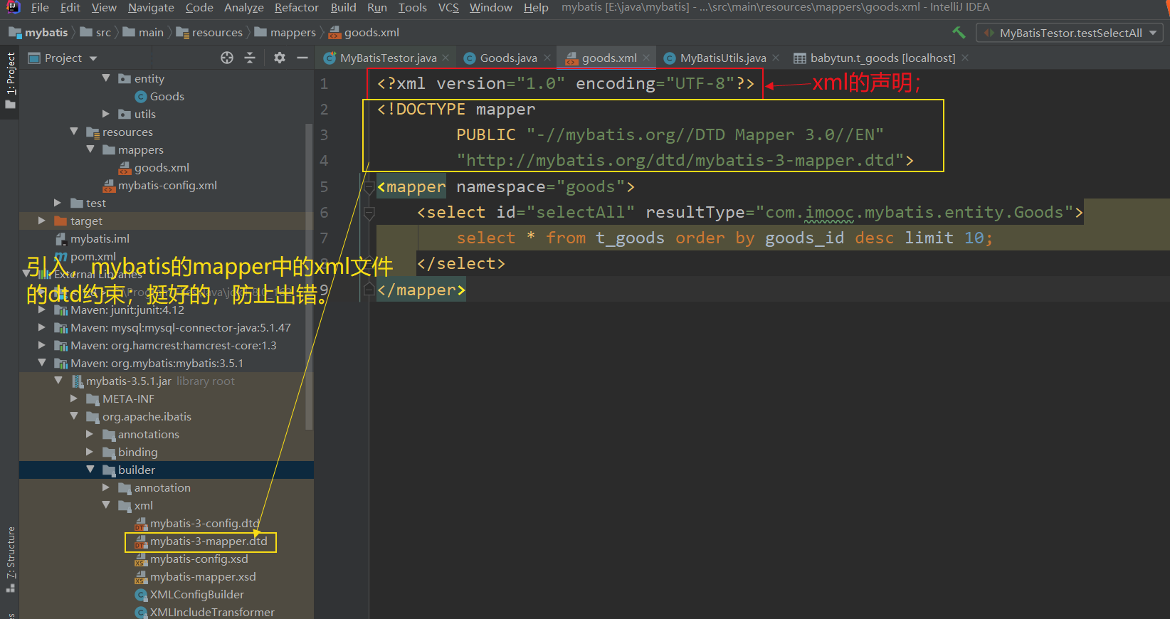 这样以后,mybatis在初始化的时候,才知道goods.xml的存在。mybatis启动的时候,就会自动的加载goods.xml文件了。